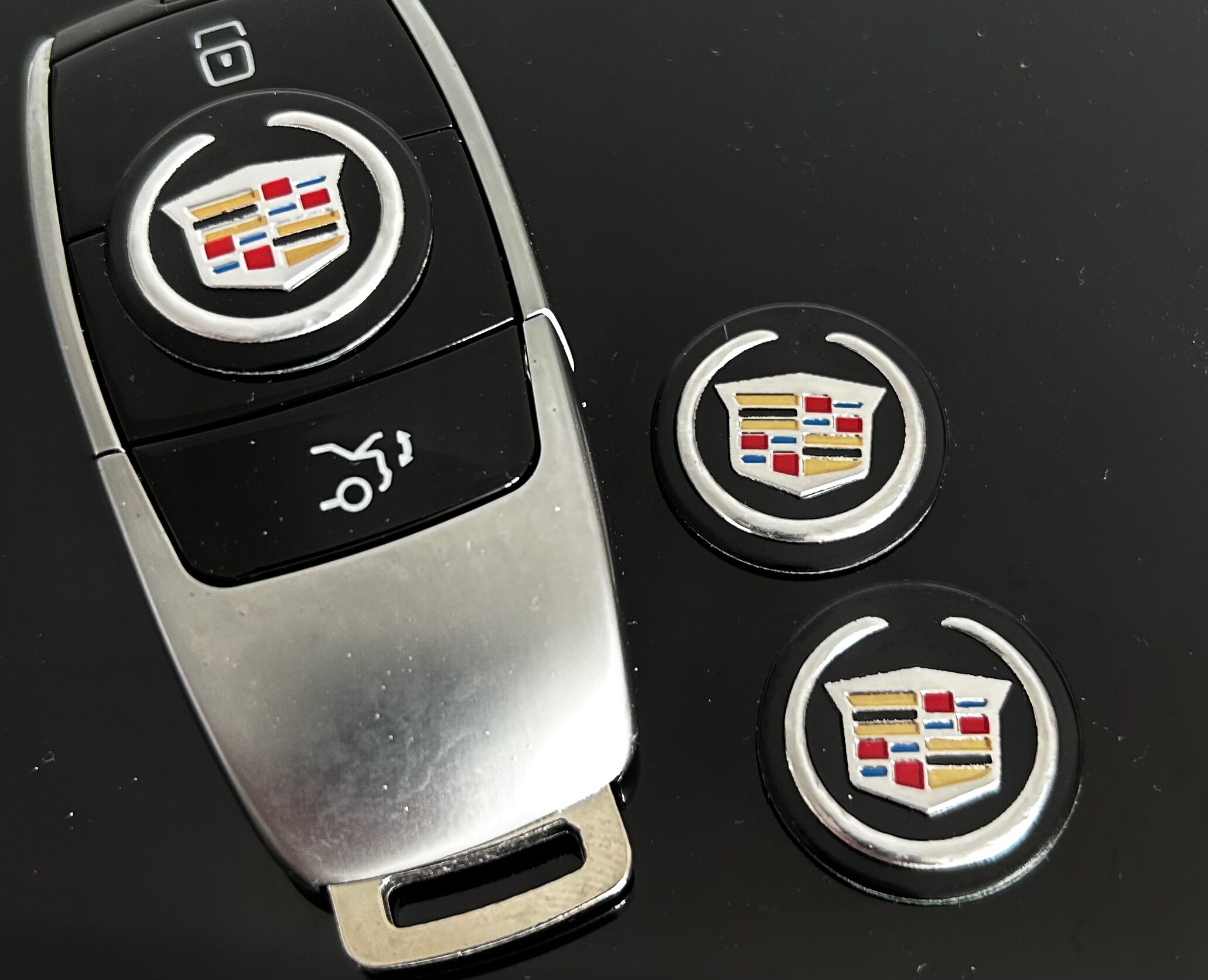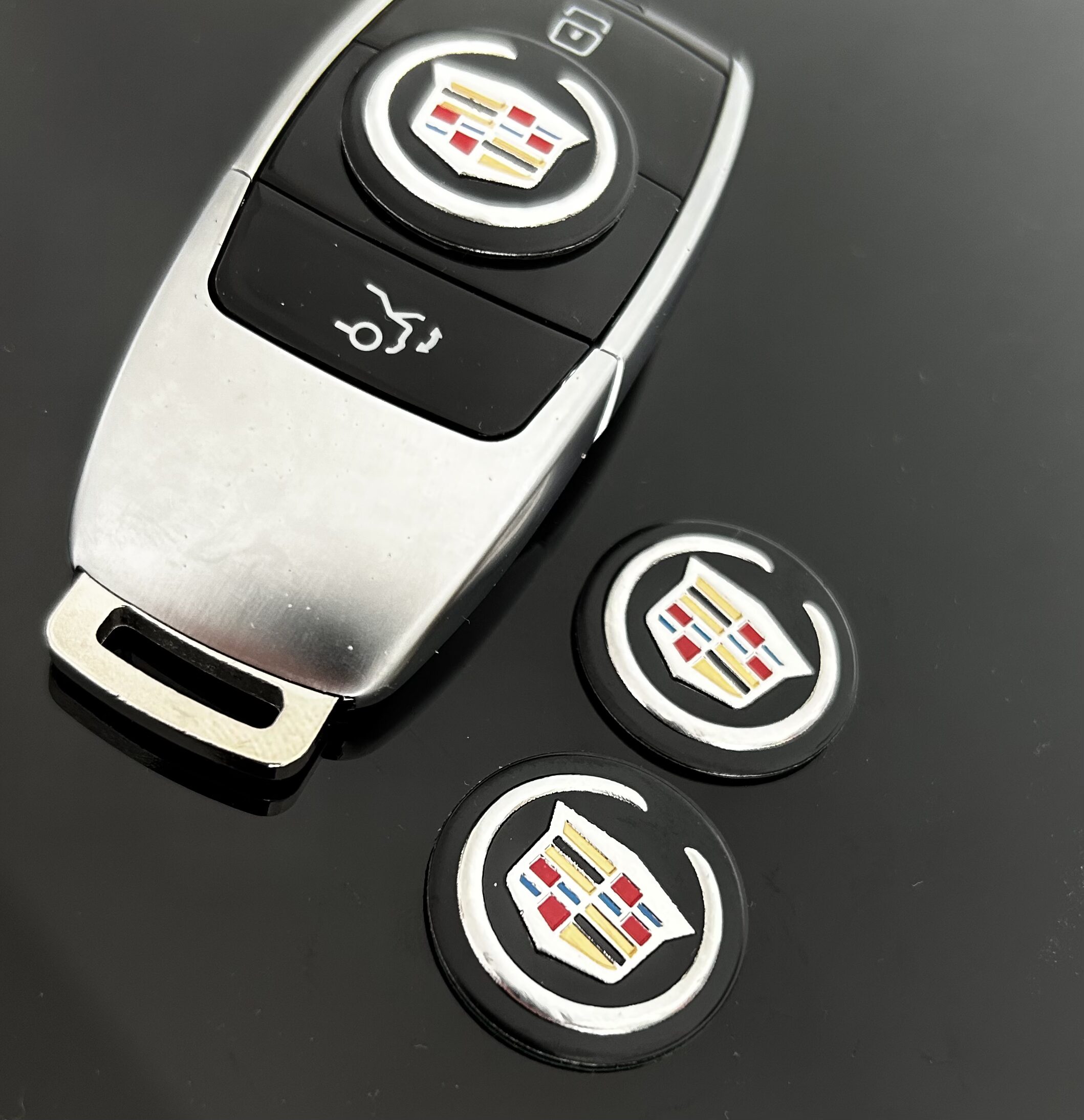 Tauschen Sie einfach Ihr altes Schlüssellogo gegen dieses Cadillac Alu Schlüssellogo.