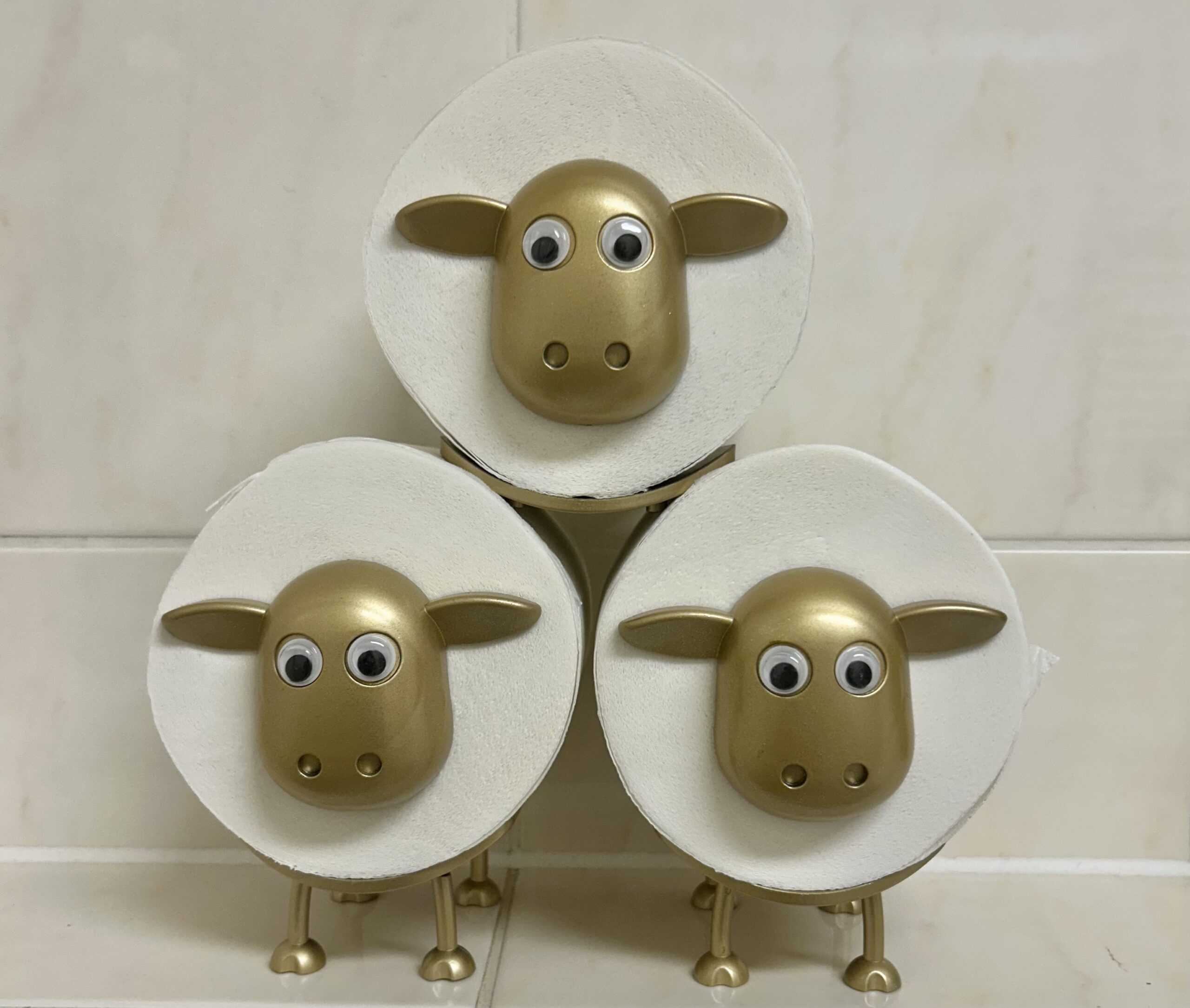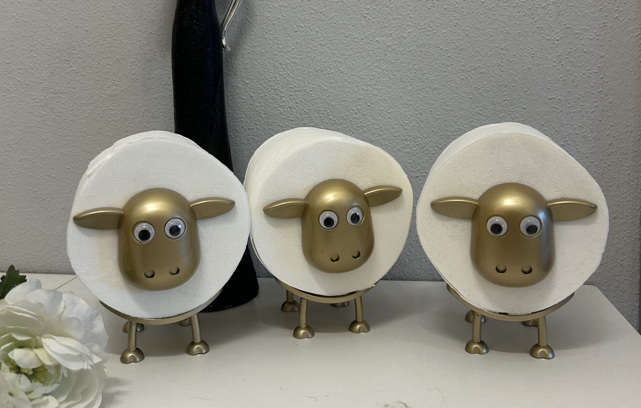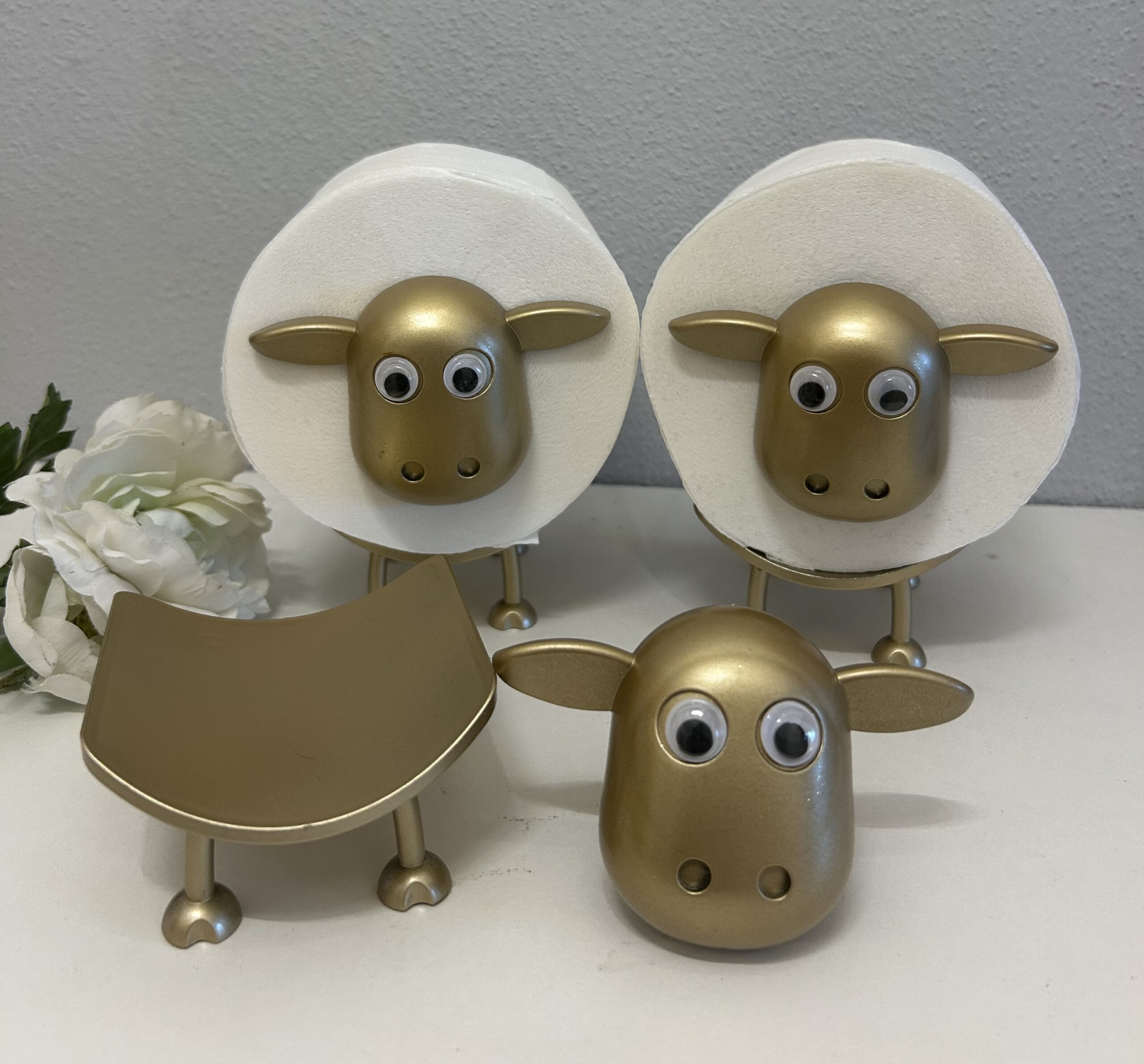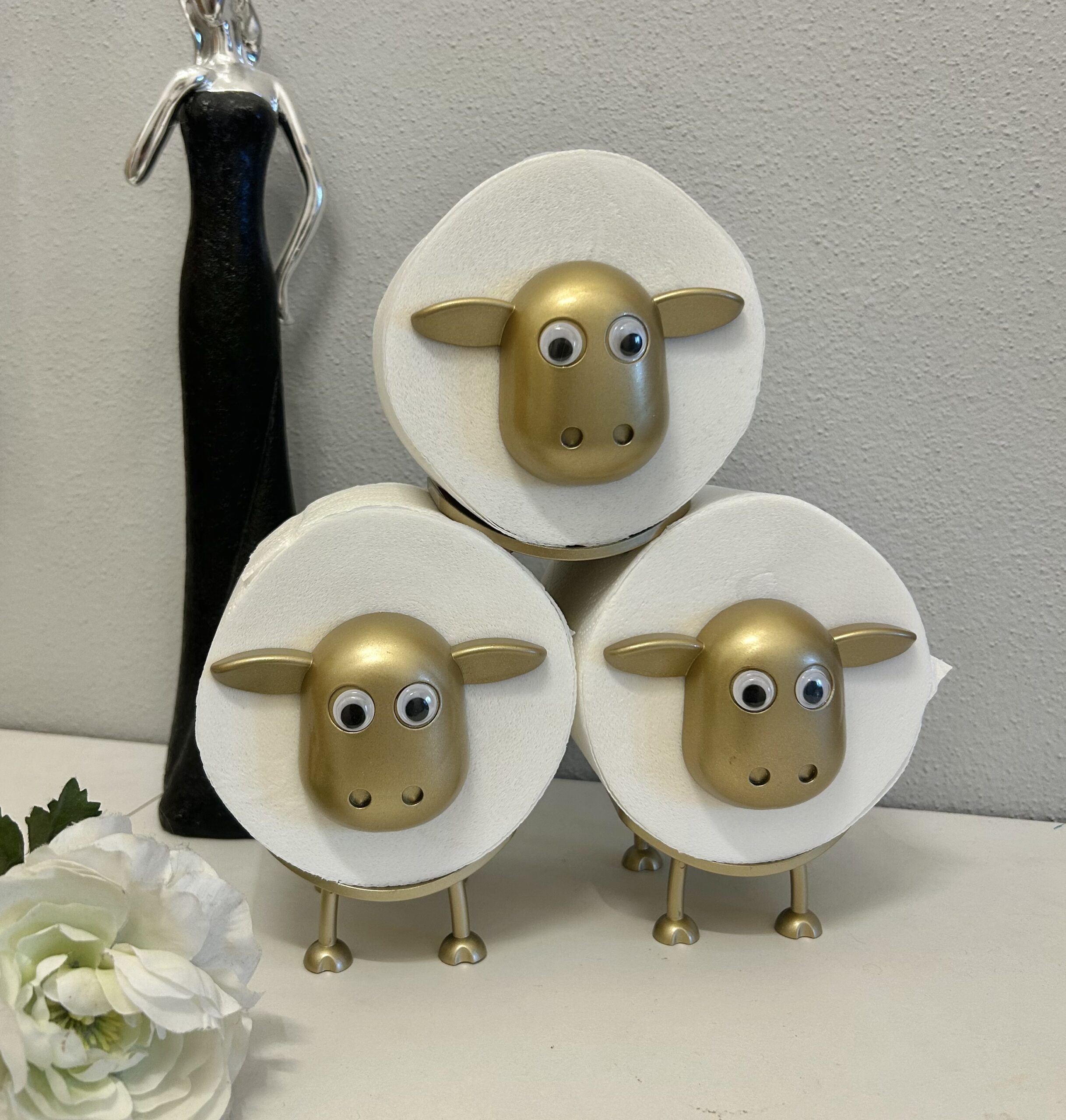 3x Schafe in Gold ohne Toilettenpapier
