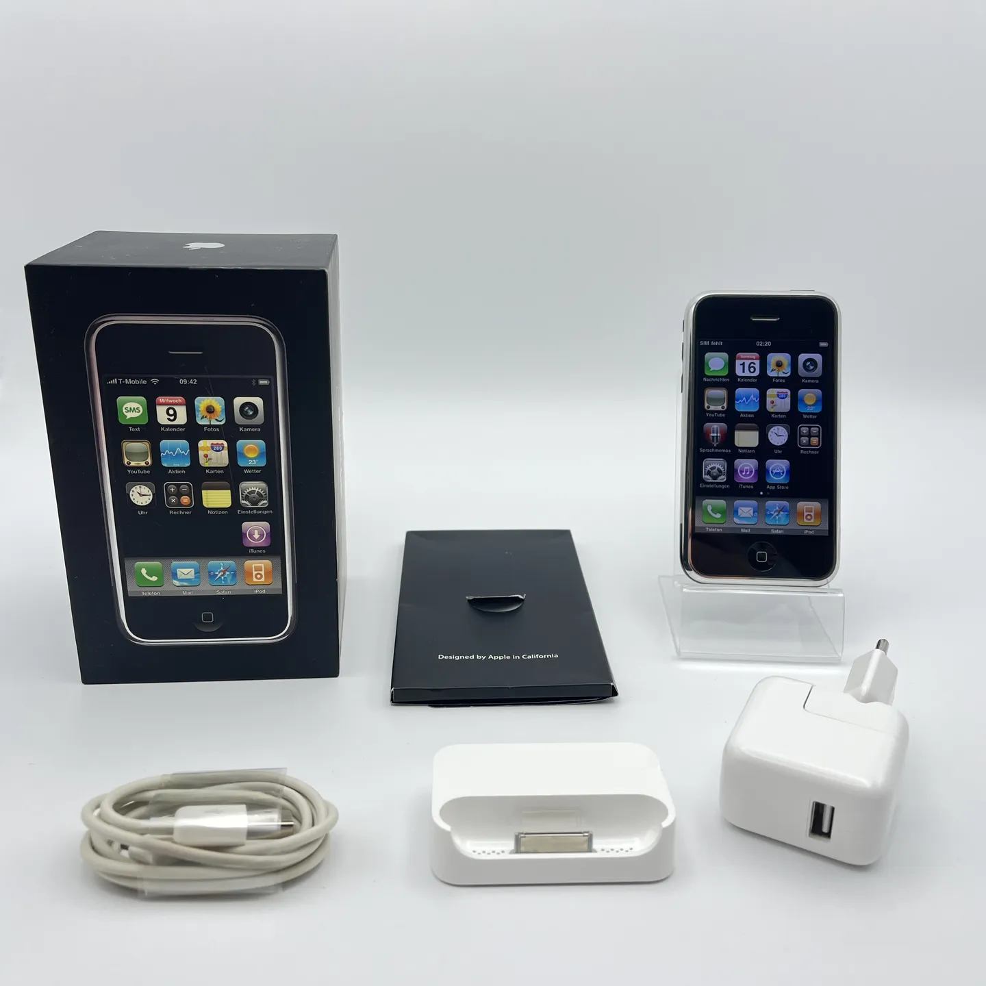 Dieses frühe iPhone 2G ist in diesem Zustand mit passender Seriennummer besonders selten. Die deutsche T-Mobile-Version ist heute ein begehrtes Sammlerobjekt mit authentischer Herkunft und vollständiger Ausstattung.
